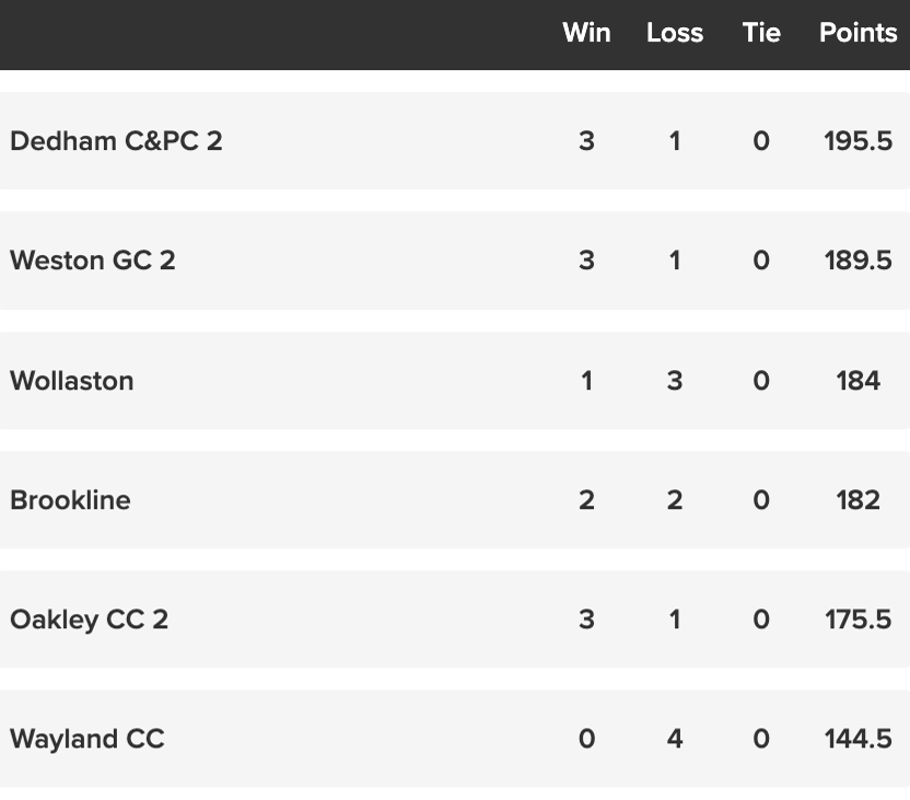 Week 3, hosted by Dedham Country and Polo Club. Singles matches versus Oakley Country Club team 2