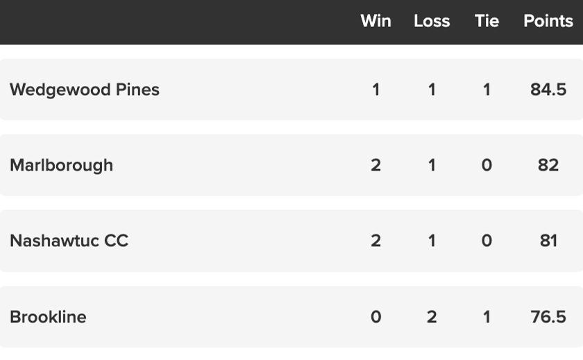 Week 3, hosted by Nashawtuc Country Club. Four Ball matches versus Marlborough Country Club.